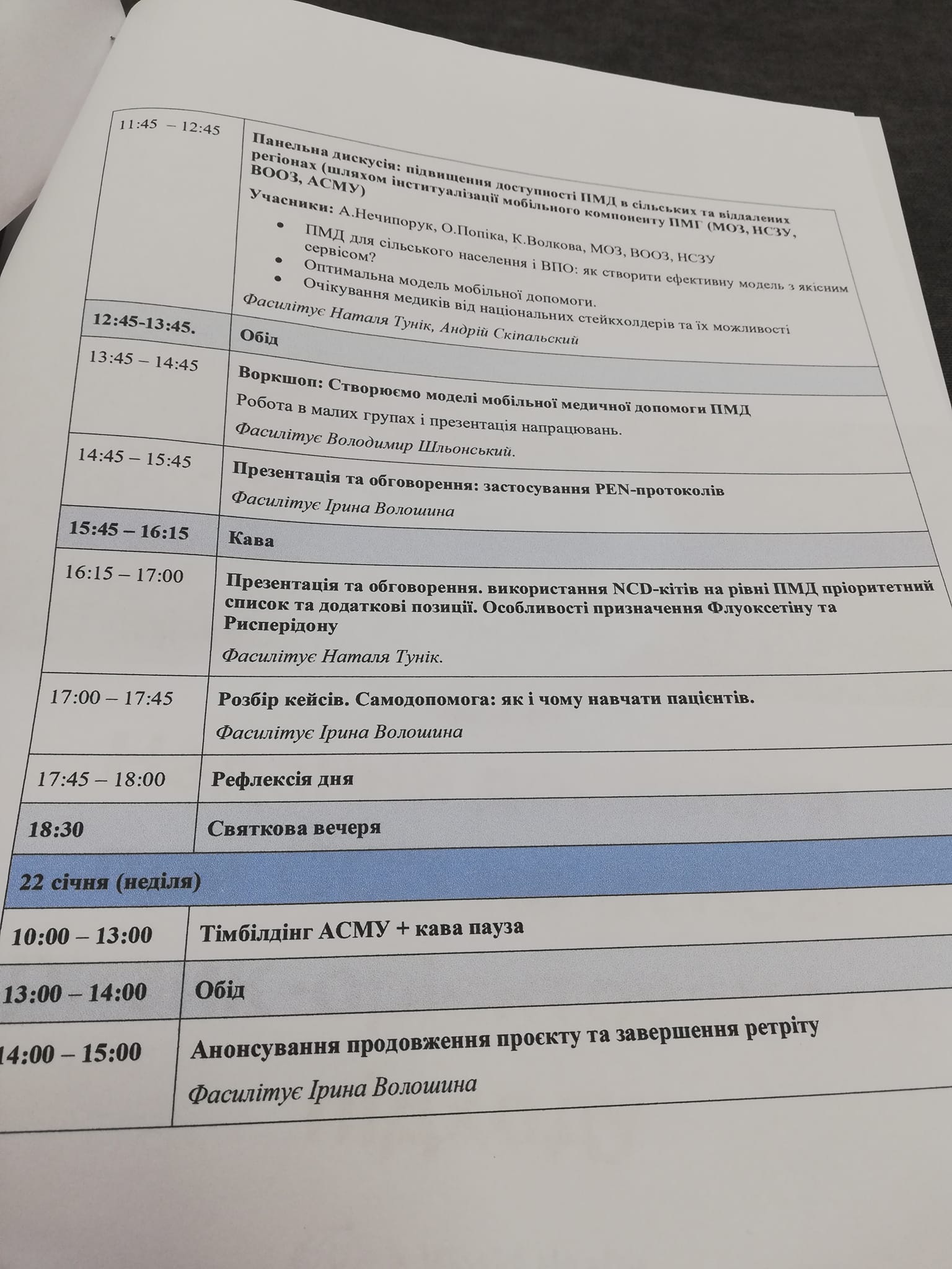 21.01 та 22.01.2023 року наша команда Шепетівського Центру ПМСД взяла участь у підсумковій конференції – ‘Ретріт та розбудова спроможності мобільних команд ПМД в рамках проекту’ Забезпечення доступності послуг первинної медичної допомоги в гуманітарних екстрених ситуаціях, як відповідь для подолання тягаря НІЗ через організацію роботи мобільних медичних команд в Україні’.